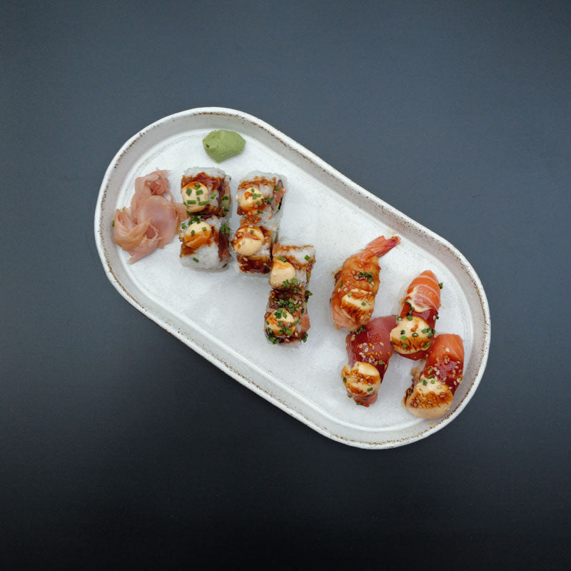 Oval handgjord tallrik gjord i en grov grå stengodslera.